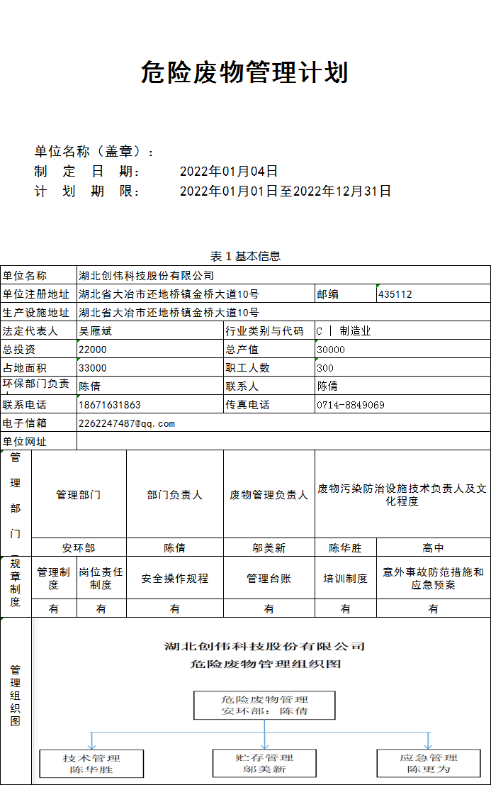 湖北創偉科技股份有限公司 聯系人:吳總 地 址:黃石市大冶市還地鎮金橋工業園 電 話:18516267111 座 機:0714—8849909